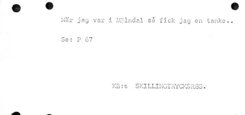 //// När jag var i Mölndal så fick jag en tanke.. Se: P 67 //// //// /KB:s SKILLINGTRYCKSREG. //// jiåtK^k ////