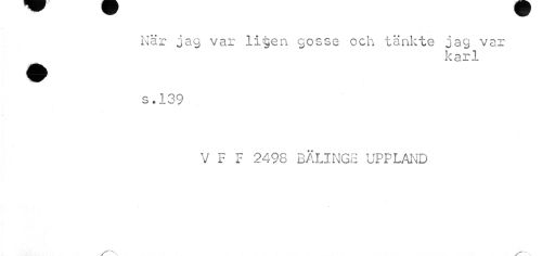 //// När jag var ligen gosse och tänkte jag var ^^ karl //// s.139 //// V F F 2498 BÄLINGE UPPLAND ////