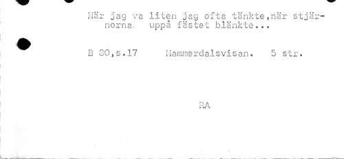 //// När jag va liten jag ofta tänkte,när stjärnorna. uppå fästet blänkte... //// B 30,5.17 Hamrnerda.lsvis.an. 5 str. //// RA ////