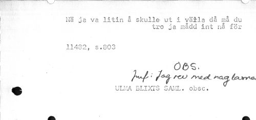 //// Nä ja va litin å skulle ut i väila c!å må du //// tro ja mådd int nå för //// 11432, s.803 //// Ö6S. //// A ULKA BLIXTS SAML. obsc. ////