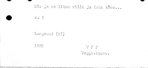 //// När ja va liten ville ja inte sova.*. //// Lungsund (VI) //// 1 OOR - r _ _ //// V F F //// Vaggv.barnv. ////