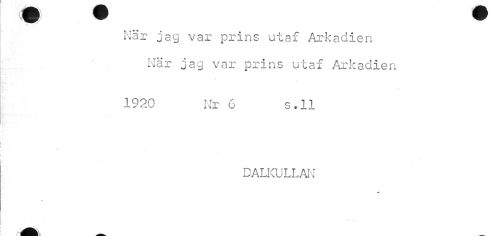//// När jag var prins utaf Arkadien När jag var prins utaf Arkadien //// 1920 Nr 6 s.ll //// • , //// DALKULLAN ////