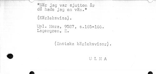 //// _r //// "När jag var sjutton år då hade jag en vän." //// (Kärleksvisa)* //// Upl. Nora, 9587, s.165-166. Lagergren, E. //// (Enstaka kärleksvisor)* ////