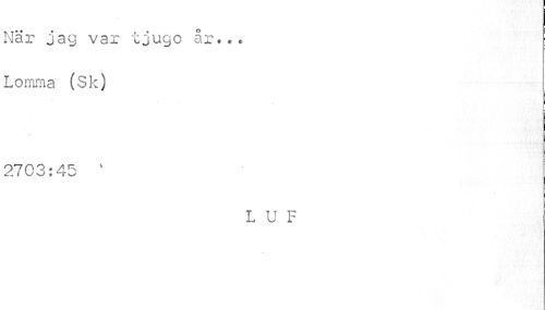 //// När jag var tjugo år... j //// Lomma (Sk) //// 2703:45 ' //// L U F ////