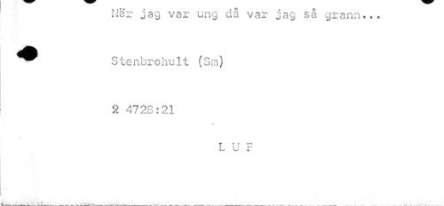 //// Nar jag var ung da var jag sa grann... //// Stenbrohult (Sm) 2 4728:21 //// 0• //// L U F ////