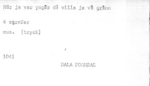 //// När ja var ynger då villa ja va grann //// 4 strofer mus. (tryck) //// //// /1041 //// DALA FORNSAL //// //// /
