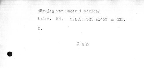 //// Näjag var unger i världen L:4+r. KN. S.L.S. 523 sl460 nr 231. //// N. //// O //// A 3 O //// r ////