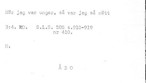 //// När jag var unger, så var jag så nätt //// 3:4. KO. S.L.S. 503 s.918-919 //// nr 410. //// » //// N. //// ÅBO //// * ////