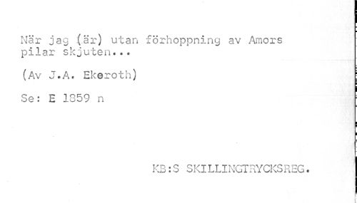 //// I ¦ //// När jag (är) utan förhoppning av Amors pilar skjuten... //// (Av J.A. Ekeroth) j //// Se: E 1S59 n //// KB:S SKILLINGTRYCKSREG. //// r ////