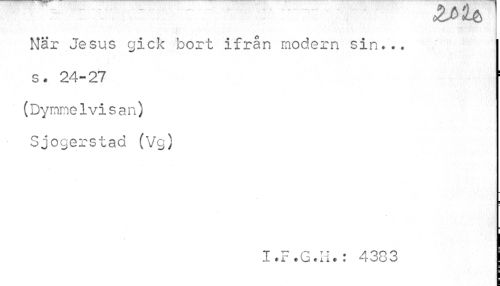 //// oC^tUÖ //// Nar Jesus gick bort ifrån modern sin... s• 24-27 (Dymmelvisan) Sjogerstad (Vg) //// i //// I.F.G.H.: 4383 ////