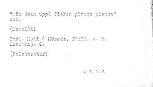 //// \ //// "När Joan uppå fiolen plonka plonka" etc. //// (Danslåt) //// Smål. Hult å Höreda, 10635, s. 6, Granberg, G. //// r //// ) //// (Polsktexter) //// * //// U L M A //// t \ //// i ////