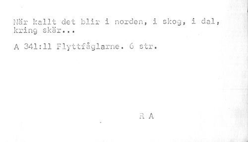 //// Stil //// När kallt det blir i norden, i skog, i dal, kring skär.,. //// A 341:11 Flyttfåglarne. 6 str. //// R A ////