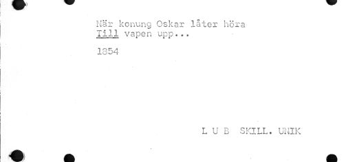 //// När konung Oskar låter höra Till vapen upp... //// 1354 //// L U B SKILL. UNIK ////