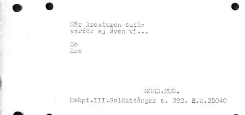 //// VP ^P //// När kreaturen sucka varför ej även vi... //// 3o Bro //// NORD.MUS. //// Mskpt.III.Soldatsånger s. 392. E.U.25040 ////