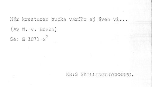 //// ] //// När kreaturen sucka varför ej även vi... (Av W. v. Braun) Se: E 1871 x3 //// KB:S SKlLLINGT RYCKSREG. ////