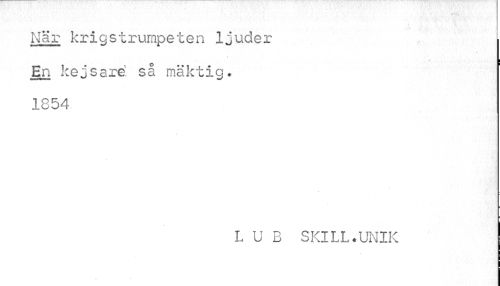 //// Nar krigstrumpeten ljuder //// > //// o //// En kejsare sa mäktig. 1854. //// L U B SKILL.UNIK ////
