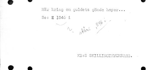 //// När kring om guldets gömda hopar... //// % //// Se: E 1346 i //// v v //// /A <& . -i //// fl»*' //// /KB :S SKILLINGTRYOKSREG. • ////