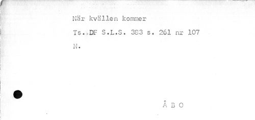 //// När kvällen kommer //// Ts.>DF S.L.S. 383 s. 261 nr 107 //// N. //// ÅBO ////