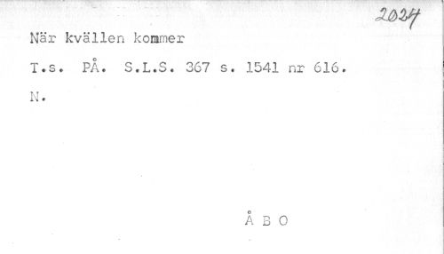 //// När kvällen kommer //// T.s. PÅ. S.L.S. 367 s. 1541 nr 616. i //// ¦i //// N. //// ÅBO //// 1 //// / f- ////