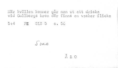 //// När kvällen kommer går man ut att dricka vid Gullbergs bron där finns en vacker flicka //// 5:4 PE SLS 5 s. 56 //// ÅBO ////