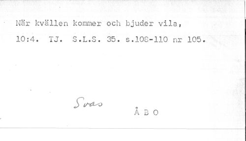//// Når kvällen kommer och bjuder vila, 10:4. TJ. S.L.S. 35. s.108-110 nr 105. //// //// /\ //// A B O ////
