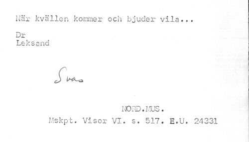 //// Nar kvällen kommer och bjuder vila... Dr //// Leksand //// NORD. HUS. //// Mskpt. Visor VI. s. 517. E.U. 24331 //// ! ////