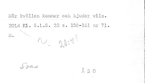 //// När kvällen kommer och bjuder vila. 20L4 Kl. S.L.S. 23. s. 158-161 nr 71. N. //// j //// JPlriX^) //// A B 0 //// « ////