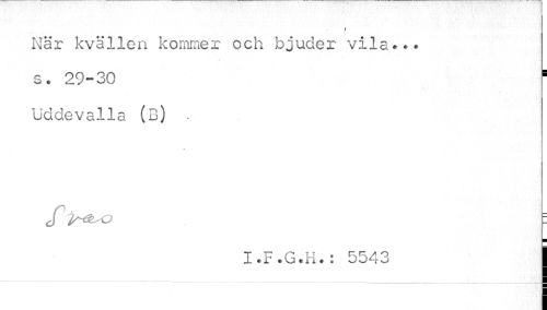 //// I //// När kvällen kommer och bjuder vila... //// s. 29-30 s //// Uddevalla (B) ¦ //// I .F .G.Ii.: 5543 I ////
