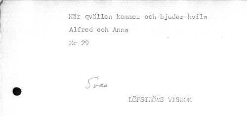 //// Nar qvällen kommer och bjuder hvila Alfred och Anna Nr 29 //// • S //// v \ //// LCFSTilö/vS VISBOK ////
