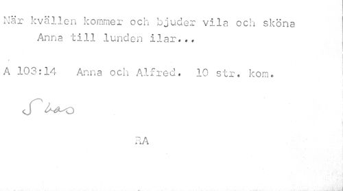 //// När kvällen kommer och bjuder vila och sköna //// Anna till lunden X <1 3 1 • # # , //// A 103:14 Anna och Alfred, 10 str. kom. //// RA //// ¦v" > '''.''I //// . . ... .. . . //// I • . L* • ' • ////