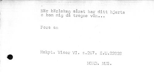 //// ..... //// i - - - - ¦ .v ' . . . //// När kärleken sårat har ditt hjerta o kom mig då trogne vän... //// Fors sn //// Mskpt. Visor VI. s.267. E.U.22323 //// NORD. MUS. ////