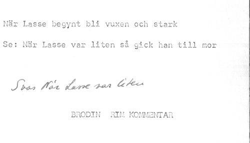 //// När Lasse begynt bli vuxen och stark //// Se: När Lasse var liten så gick han till mor //// JIH^ /GU <£sr>€ éc*^ //// BRODIN RIM KOMMENTAR ////