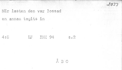 //// <JÖJ1 //// ¦ //// När lasten den var lossad //// ' . . , l //// en annan tagits in //// ¦ //// 4:8 LF INE 94 s.2 //// | //// ÅBO ////