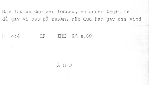 //// 'a //// När lasten den var lossad, en annan tagit in då gav vi oss på resan, när Gud han gav oss vind //// : 4:4 LF INE 94 s.60 //// ÅBO ////