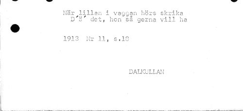 //// När lillan i vaggan hörs skrika D'ä' det, hon så gerna vill ha //// 1913 Nr 11, s.13 //// DALKULLAN //// f ////
