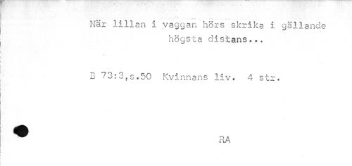 //// * //// När lillan i vaggan hörs skrika i gällande //// högsta distans..« //// B 73:3,s.50 Kvinnans liv. 4 str. //// RA ////
