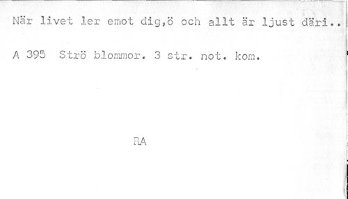 //// När livet ler emot dig,ö och allt är ljust däri.. A 395 Strö blommor* 3 str. not. kom. 1 //// I //// i //// RA //// i ////