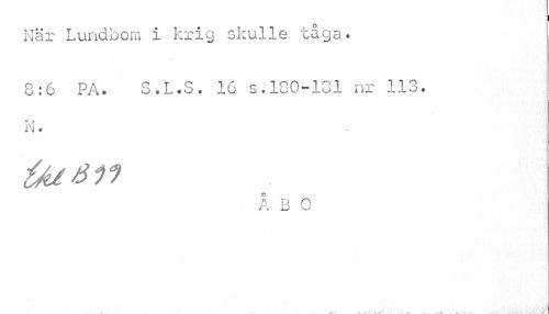 //// När Lundbom i krig skulle tåga. //// 8:6 PA. S.L.S. 16 s.130-181 nr 113. N. //// a D n //// . .. .... > ... A ////