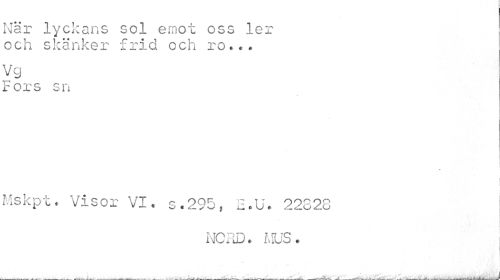 //// När lyckans sol emot oss ler och skänker frid och ro... //// Vg //// Fors sn //// i //// Mskpt? Visor VI, S.295s E.U. 2232.3 //// NORD. MUS. //// i //// v_____— . _____. . _ .. ___... ..... _<_____——_____,___ ,„ ------- . ____J ////