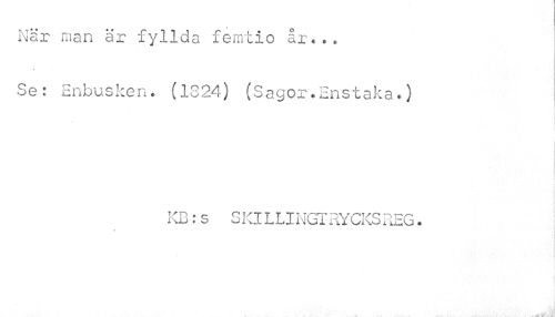 //// När man ar fyllda femtio år... //// Se: Enbusken. (1324) (Sagor.Enstaka.) //// KB:s SKILLINGTRYCKSREG. ////