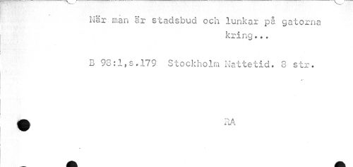 //// • • • _ //// När man är stadsbud och lunkar på gatorna //// lC2?ZL 1 i Q * * « //// B 93:1,8.179 Stockholm Nattetid. 8 str. //// • • //// ? * ////