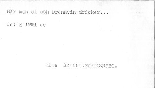 //// När man öl och brännvin dricker... //// Se: E"19011 ee 1 //// KB:s SKILLINGTRYCKSREG. ////