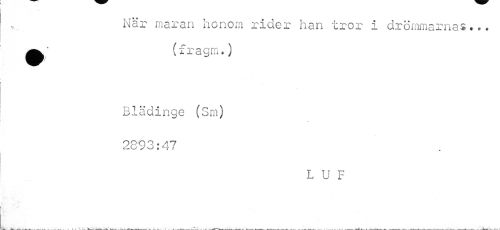 //// „ När maran honom rider han tror i drömmarnas... //// ^ (fragm.) //// Blädinge (Sm) 2893:47 //// L U F //// • e* " //// rw . A. v. s. i/A W.A ..... . ^MlU-h^fn V*- ^ . .. L .k. —a—. — -.-L^r^. A r . ¦ ¦ k T r» A, A . . . . * . k VT^-fw. k ..-..--— . - - _____-__—____... .V^ ////