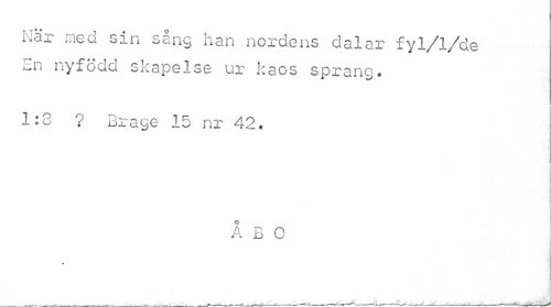 //// När med sin sång han nordens dalar fyl/l/de En nyfödd skapelse ur kaos sprang. //// 1:3 ? Brage 15 nr 42. //// i //// ÅBO ////