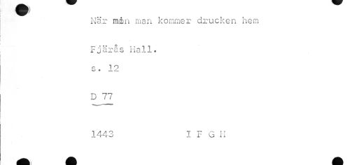 //// När mån man kommer drucken hem //// Fjärås Hall. s. 12 //// D 77 //// 1443 I F G II ////