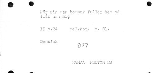 //// m w ^ //// När min man kommer fuller hem så slår han mig //// II s.24 mel.not. s. 31. //// Danslek //// t>n //// KVI-IAA HULT IN MS //// -MM*. ___ ////