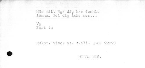 //// — -V .--. » y . //// När mitt öga dig har funnit lämnar det dig icke mer... //// Vg //// Fors sn //// Mskpt. Visor VI. s.271. E.U. 22828 //// UOi uj • MUS # ////
