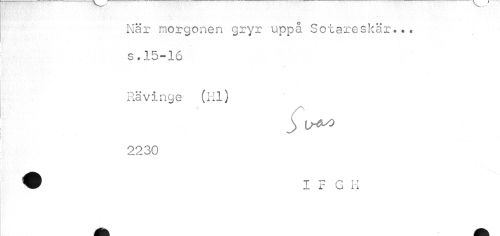 //// När morgonen gryr uppå Sotareskär?*• s * X o—i //// Rävinge (Hl) 2230 ////