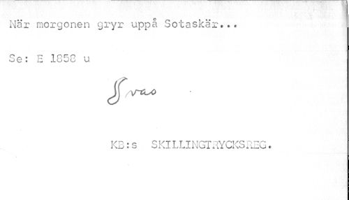 //// När morgonen gryr uppå Sotaskär... Se: E 1858 u //// Jj VäsO //// KB:s SKILLINGTRYCKSREG. ////