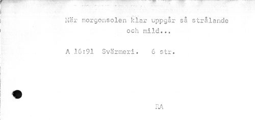//// När morgonsolen klar uppgår så strålande //// och mild«.. //// A 16:91 Svärmeri. 6 str. //// RA ////